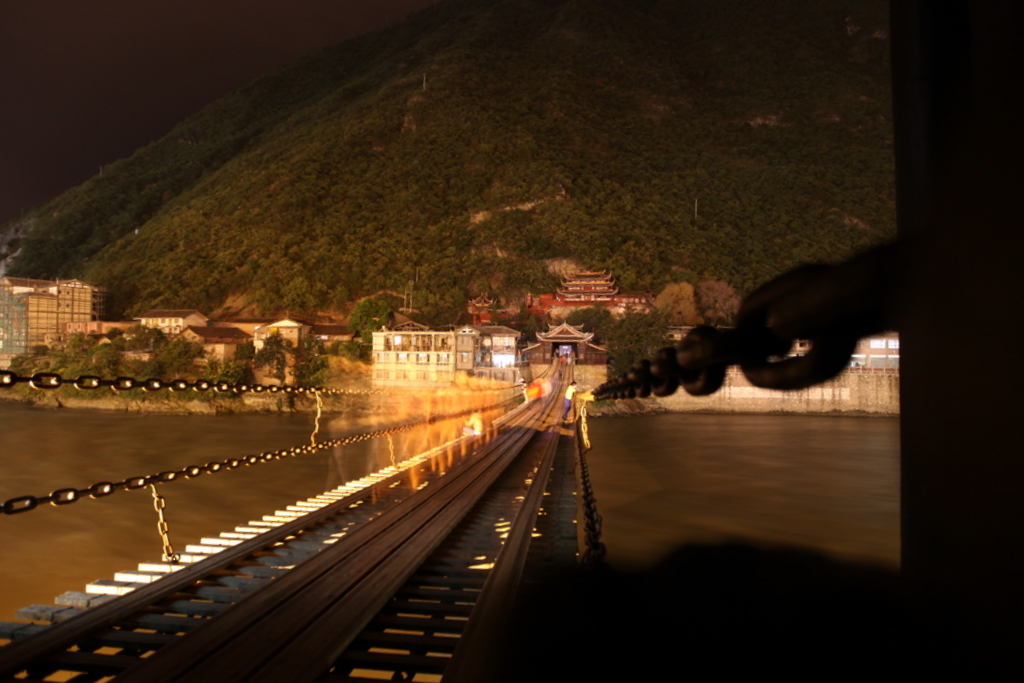 一路弯弯曲曲,终于到达第一天的目的地:泸定,看地图不远,但在山路上慢腾腾的开起来还是有些考验毅力。找到宾馆,吃了一碗鸡汤面,买了柚子和橘子,路过泸定桥,夜色中大门洞开,走进一看才发现里面挤满了游客,江水哗啦啦响彻夜空,在桥上走了走,瞬间感受到了江水和铁索澎湃的力量。现在回想起来,一切都好像还未远去。