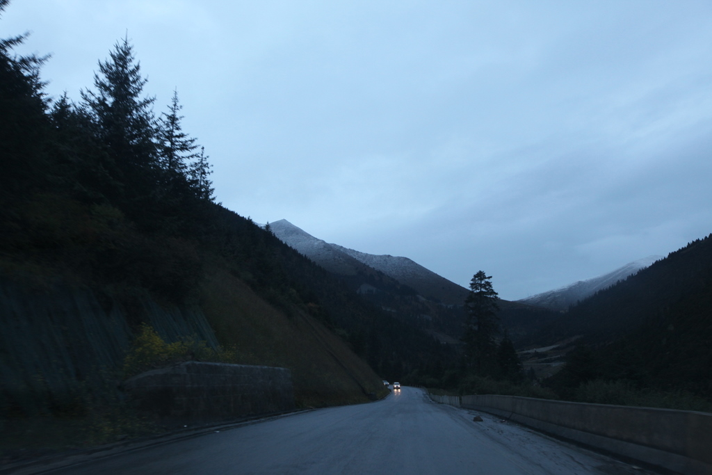 入夜,进入二郎山隧道,听说如果白天经过这个隧道,进入还是四川盆地景色,出来就是高原了,可惜只有回来时再体验了,不过最后回程听说318交通管制加上路太烂,没有原路返回。