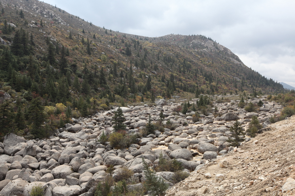 期间有一段路,山上植被很好,河床里有无数的大圆石头,不明来历,只是大的让人心惊。