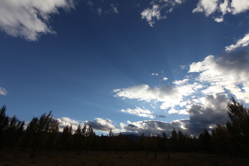 放下一些行李,时间还早,我们出去不远的“色拉乡”看传说中的青杨林,而实际发现,青杨林其实是在傍河乡,一字排开挤满对岸的金黄色,夕阳西下,逆光中清晰而美丽。当然生活并不完美,这一路的土路,加上不远处河边的挖机,尘土漫天,庆幸不是骑车过去,而且风向并未让我们吃进太多的灰……