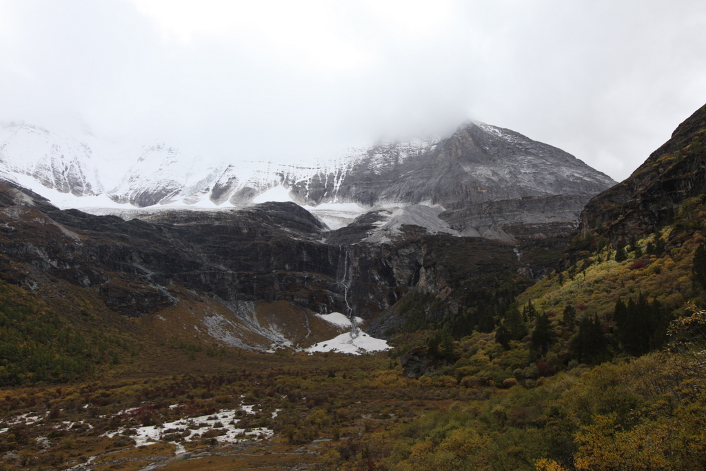 我们开始考虑半途而返,明天再进,虽然走了那么多心有不甘,但现在已经体力不支外加前途不定了。这便是与雪山最近的距离:
