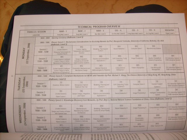 IEEE是国际上影响深远的计算机界学术会议,CIS-RAM是其人工智能和机器人方向的分会,居然是三年前由我们学校的老师申请开始举办的,现在第三届又在成都由UESTC主办,哪能不去瞻仰,当然,对我来说最主要的目的还是去练听力~